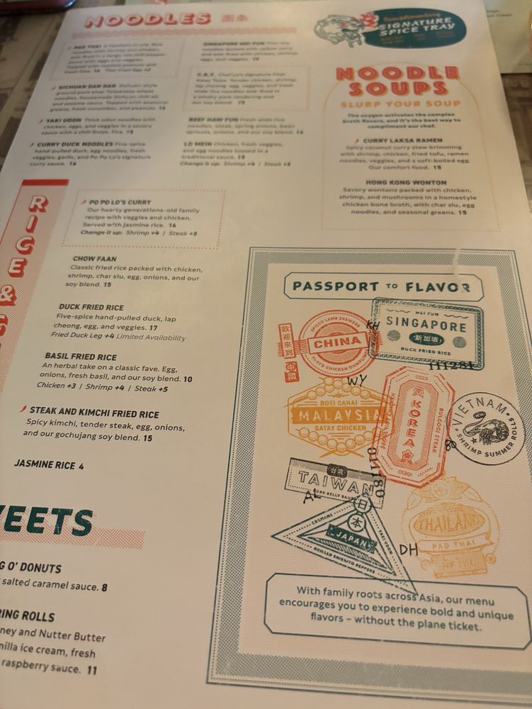 Chef Lo's signature Char Kway Teow. Wok-fired shrimp, chicken, lap cheong, egg, veggies and fresh wide rice noodles in a soy and pork sauce.