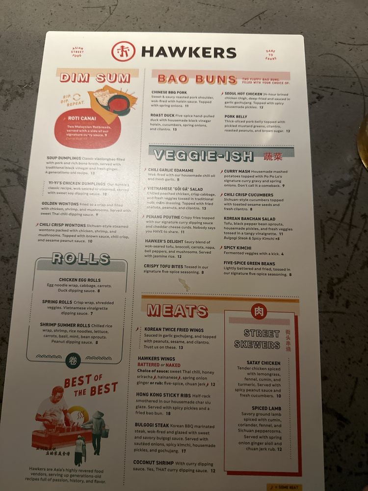 Hawkers Asian Street Food on 626A Main St in Nashville offers a diverse menu of Asian fusion tapas and small plates. The restaurant provides delivery, takeout, and reservations, with vegan options available. The vibrant atmosphere is described as hipster, casual, and trendy, perfect for dining with friends or family. Customers praise the impeccable service and recommend dishes like Udon noodles, steak, kimchi fried rice, Korean twice-fried wings, and Roti Canai. The restaurant is wheelchair accessible and offers outdoor seating, free Wi-Fi, and a full bar with happy hour specials. With its Asian-owned identity and creative dishes like Roti, Hawkers Asian Street Food promises a unique dining experience worth revisiting.